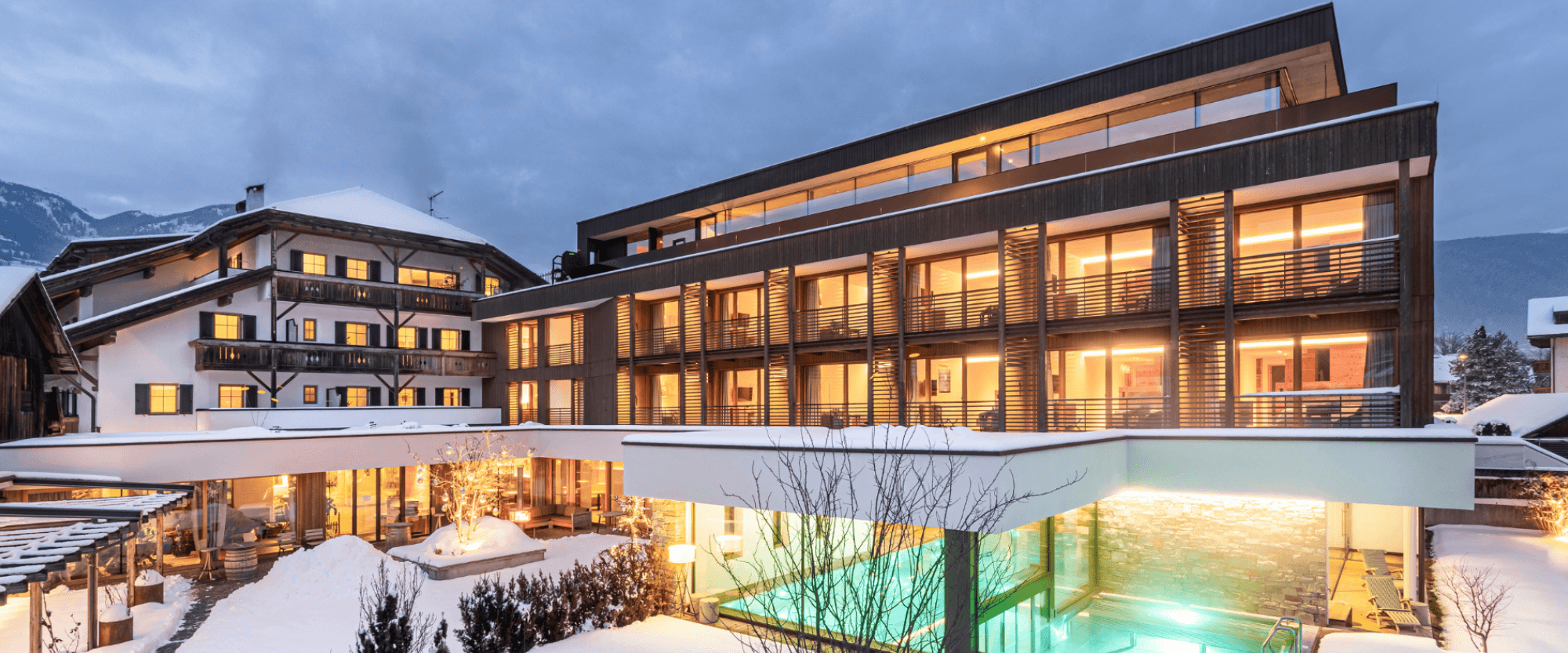 A hotel with walls full of history and views of the Dolomites. This hotel invites you to slow down in the rooftop wellness area. Regional dishes, warm hospitality, and an atmosphere that encourages you to unwind make this a Christmas of snow and silence. With the illuminated Bruneck Christmas Market within walking distance and 118 kilometers of slopes at Kronplatz close by, you get the best of both worlds: a lively winter ambiance by day and the calm of an intimate hotel by night.