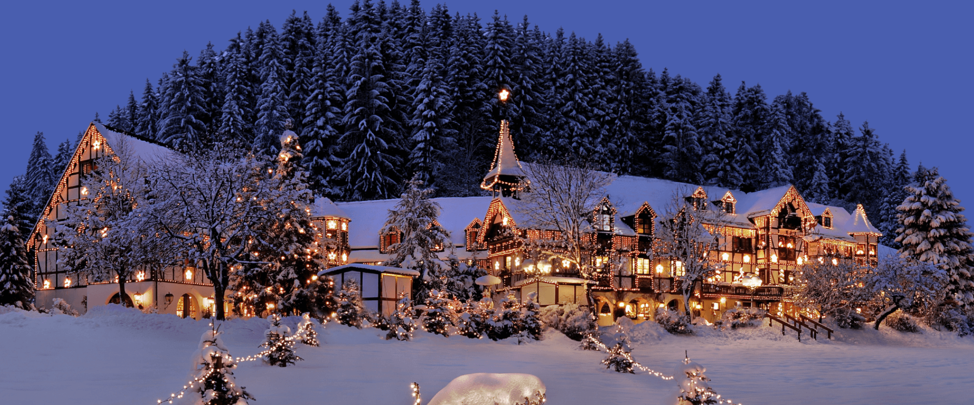 This former hunting lodge is now a five-star hotel with serious culinary credentials. From fondue by the open fire to dining at star level: Christmas here is celebrated with finesse, warmth, and the scent of pine needles in the air. During the festive season, Jagdhof is among the most beautifully decorated hotels in Germany, with richly adorned salons, crackling fireplaces, and extensive Christmas menus on both Christmas Day and Boxing Day. While the landscape outside is covered in a blanket of snow, inside you linger over long lunches and dinners.
