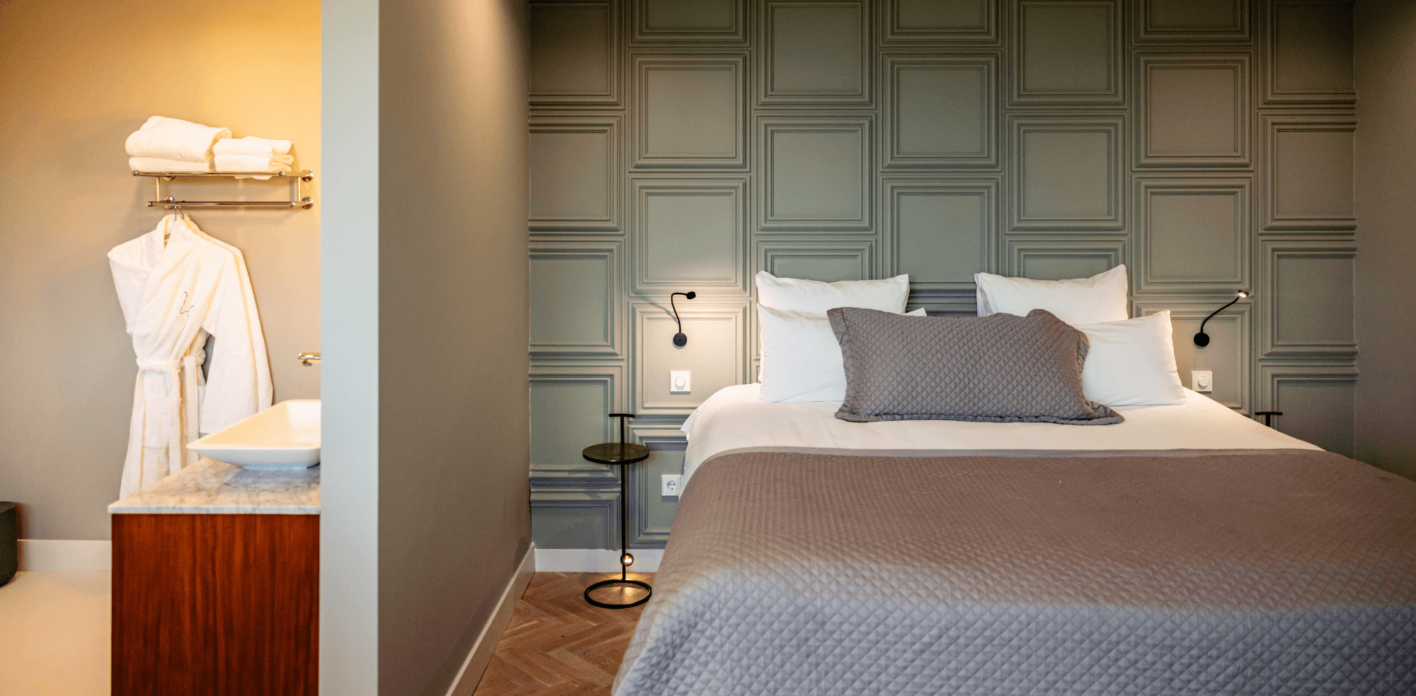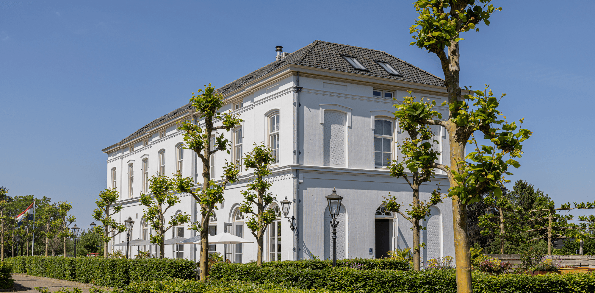 On the outskirts of Amsterdam, nestled in the greenery of Abcoude, you'll find Boutique Hotel De Witte Dame – located in the former railway station building dating back to 1843. Since its complete renovation in 2015, the building exudes style and tranquility while preserving its rich history. The hotel offers fourteen luxurious rooms, including five spacious deluxe rooms, authentic superior rooms beneath the original station beams, two stylish suites with open bathrooms, and four private lodges in the garden. These lodges feature a private entrance, a terrace by the water, and breathtaking views over the surrounding meadows of ’t Gein. Every room is thoughtfully designed, featuring king-size box spring beds, soft textiles, crisp linen, and luxurious bathrooms with rain showers and/or bathtubs. The atmosphere is relaxed, the comfort high—perfect for a weekend getaway, a city trip, or a peaceful night away from the bustle. For those seeking a quiet place to work or meet, the hotel offers several charming spaces that match its intimate and personal ambiance.