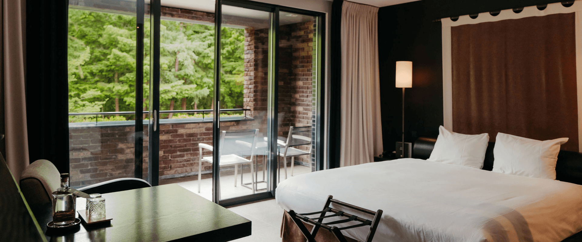 Hotel Gastronomique De Echoput, een verborgen parel midden in het Kroondomein Het Loo, waar het bos fluistert en historie tot leven komt. Al zeventig jaar is De Echoput een begrip op de Veluwe, gestart als bescheiden theehuis en uitgegroeid tot een vijfsterren toevluchtsoord voor levensgenieters en fijnproevers. De familie Klosse, inmiddels de derde generatie, verwelkomt je met persoonlijke warmte en een diepgewortelde passie voor smaak en gastvrijheid. Hier slaap je in een van de 42 royale kamers en suites, ontworpen met het oog op rust, comfort en harmonie met de natuur. Natuurlijke materialen, zachte kleuren en grote ramen brengen het bos tot aan je bed – bijna alle kamers hebben een balkon, loggia of erker om de frisse boslucht te ervaren. Geniet van luxe badkamers met natuurstenen inloopdouche en ligbad, comfortabele bedden, vloerverwarming en moderne faciliteiten als klimaatbeheersing en snelle wifi. Vanuit je kamer kijk je uit op eeuwenoude beuken en eiken, terwijl de wandel- en fietsroutes direct voor de deur beginnen. De Echoput ademt historie: van de koninklijke waterput en het theehuis van Wilhelmina tot het gastronomisch instituut van vandaag, waar grootvader Jaap, zoon Peter en kleinzoon Lodewijk ieder hun stempel drukten. Hier wordt de kunst van het genieten doorgegeven van generatie op generatie – in het hotel, aan tafel én in het bos.